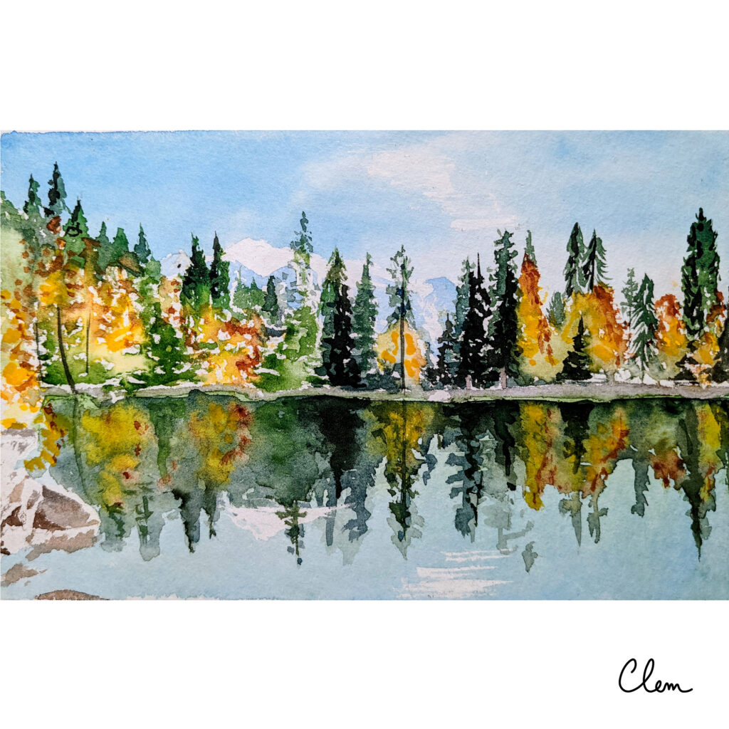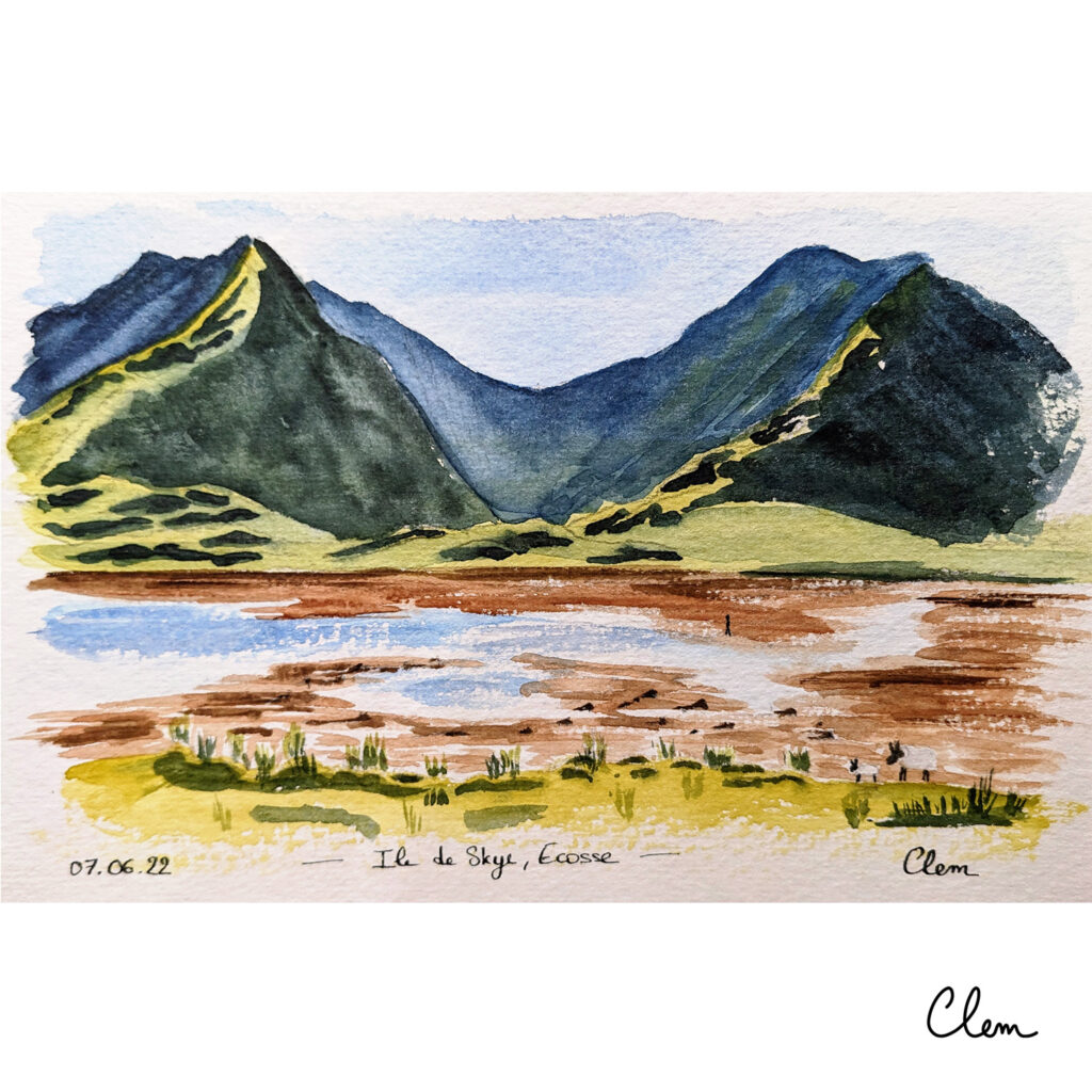 Je réalise des aquarelles de paysages à partir de vos photos : montagnes, lacs, mer, campagne, lieux de vacances ou paysages chargés de souvenirs.