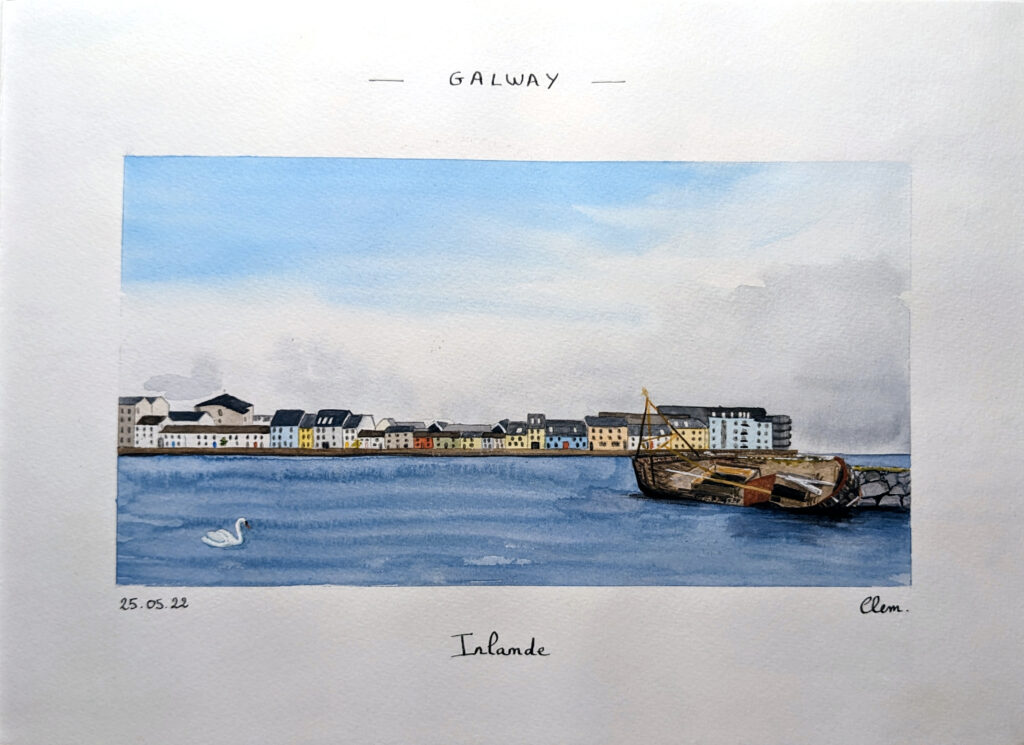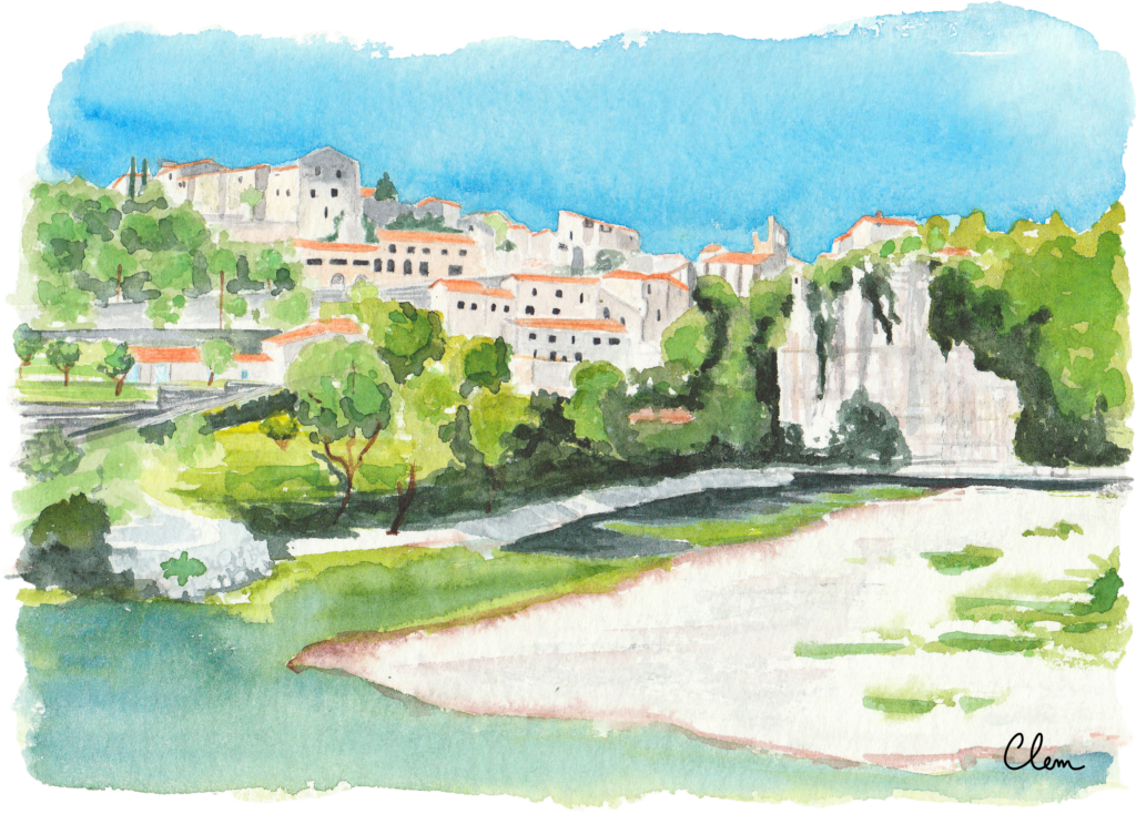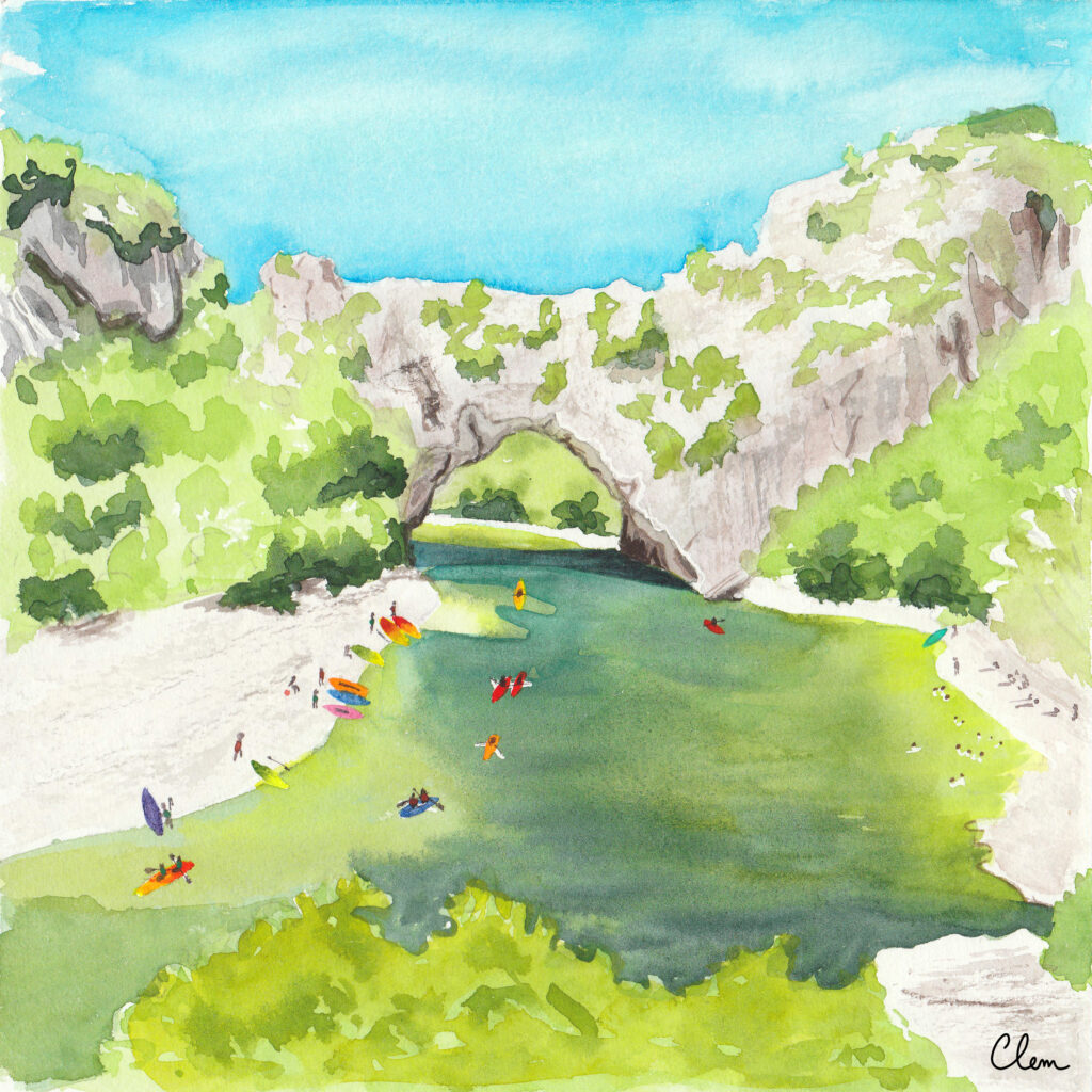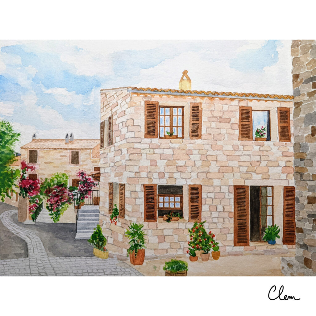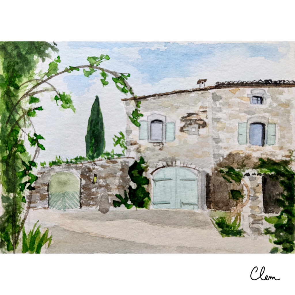 L’aquarelle permet d’apporter une atmosphère douce et lumineuse, tout en conservant l’essence du lieu.