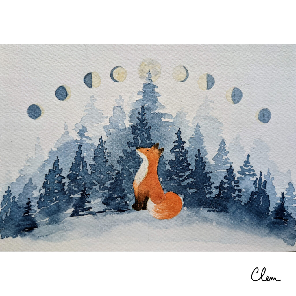 Je crée des aquarelles petit format, idéales pour la carterie et les supports papier : cartes de vœux, cartes postales, marque-pages, faire-part de mariage ou de naissance.