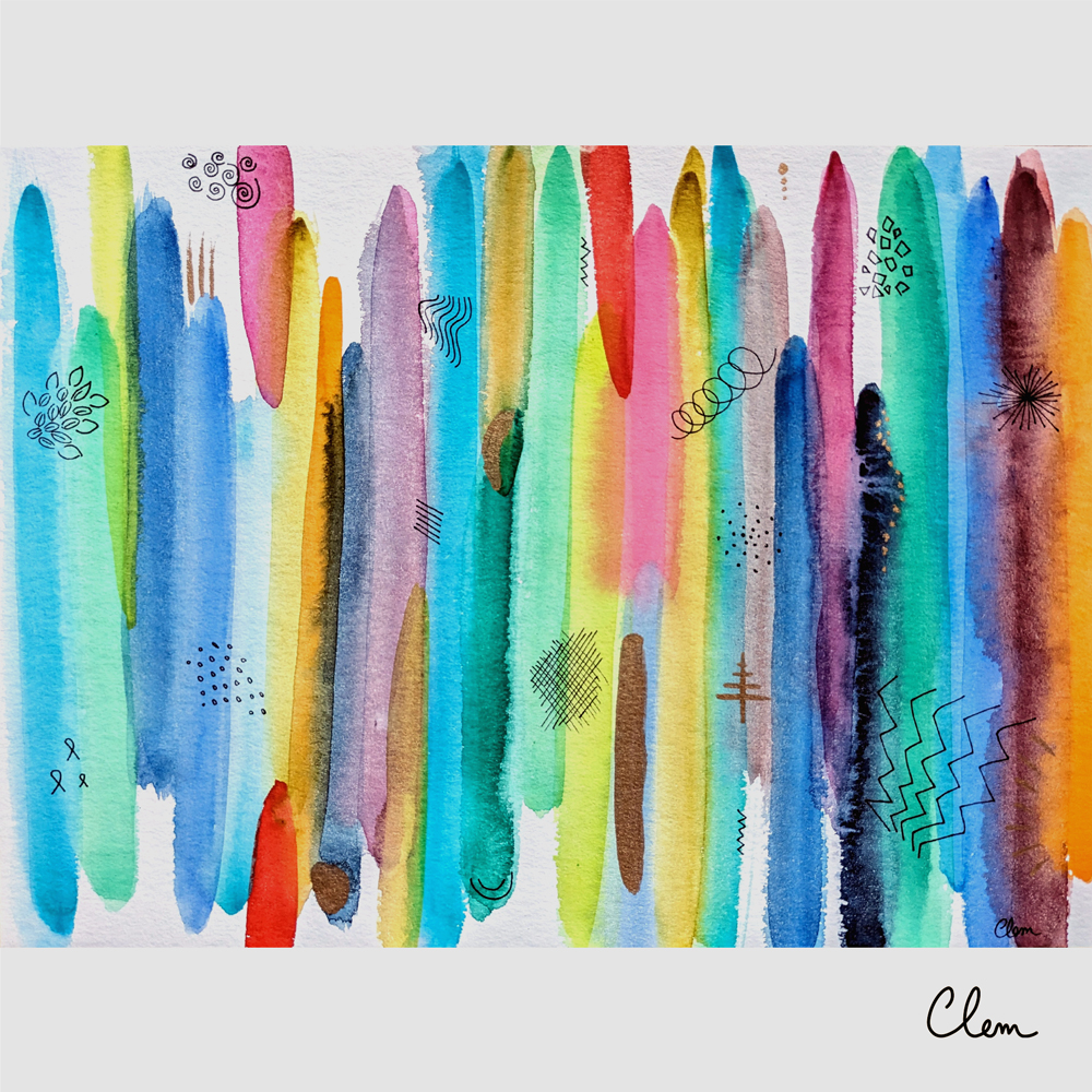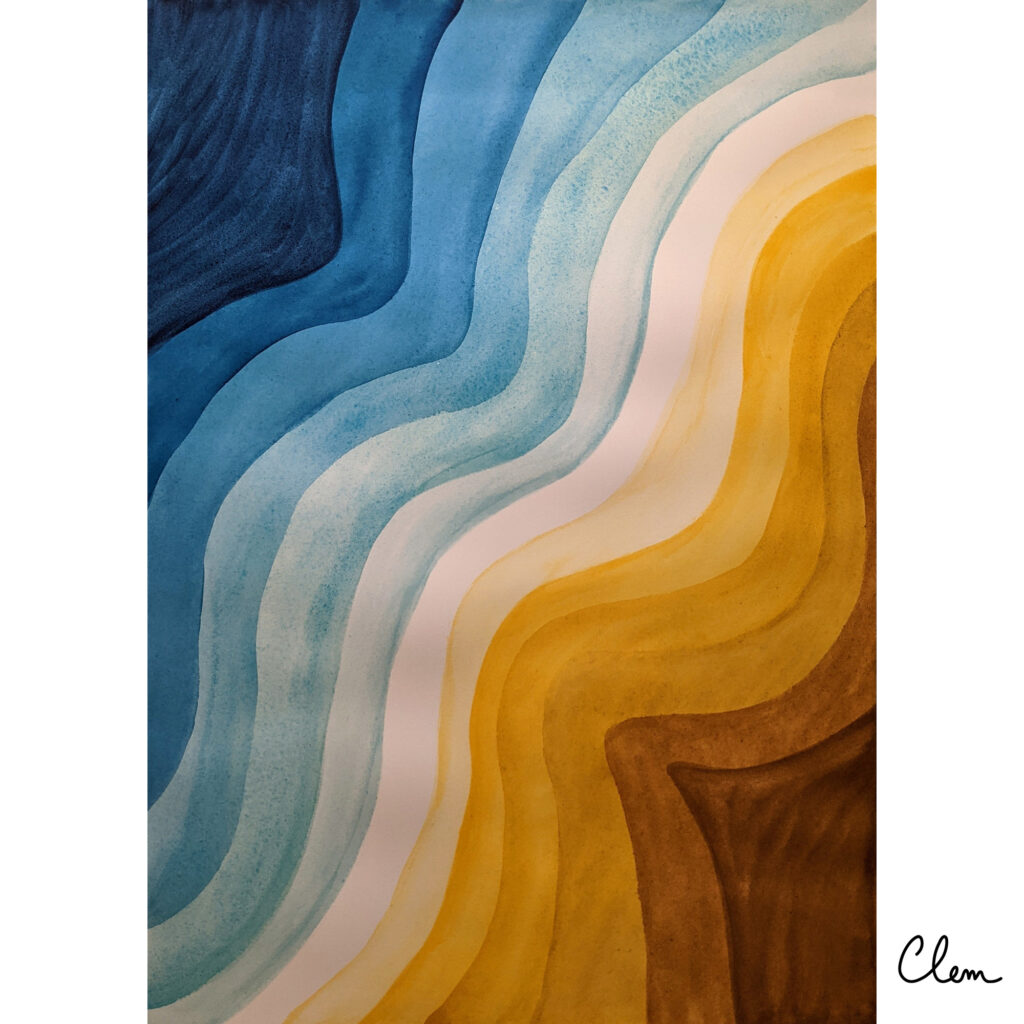 Je réalise également des tableaux abstraits à l’aquarelle, où les couleurs, les textures et les mouvements s’expriment librement.
